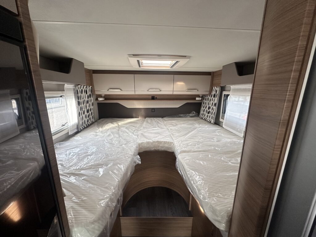 - Enkele bedden achterin: 201 x 85+ 201 x 77 cm uit te breiden tot 1 groot bed met tussenstuk van ongeveer 50 cm