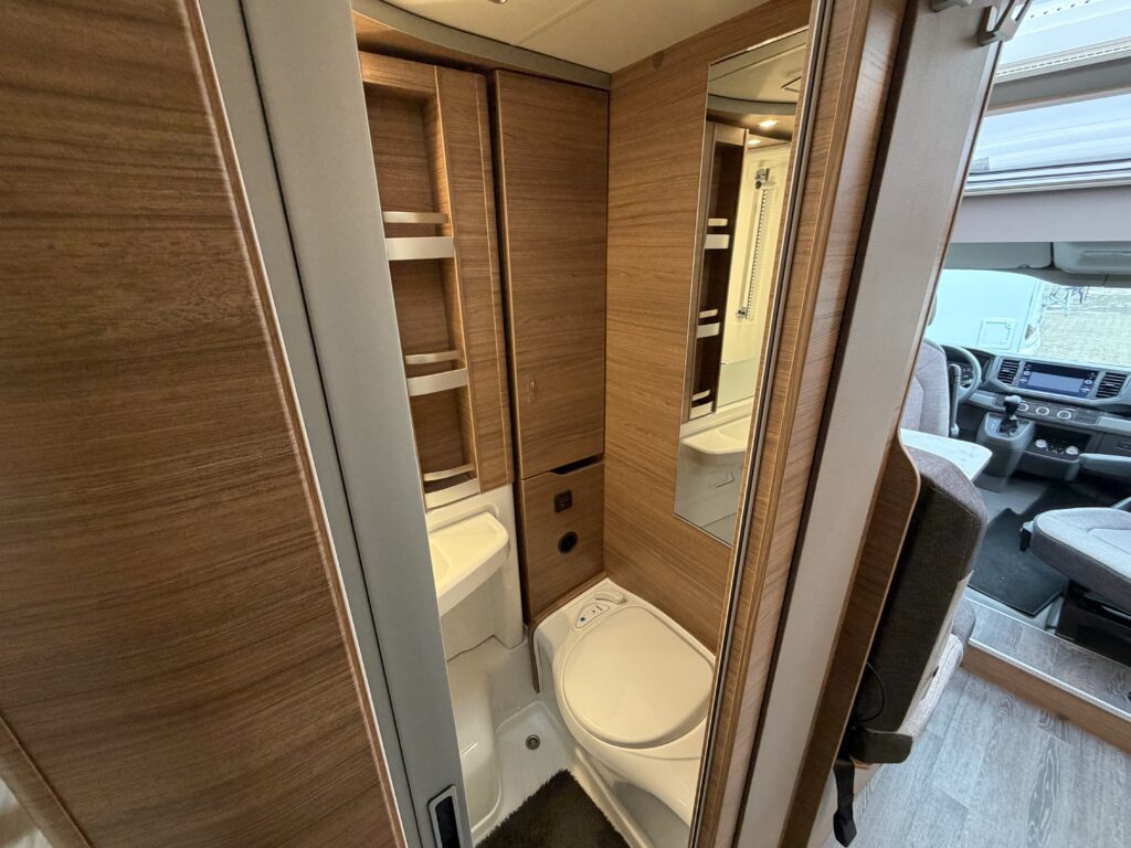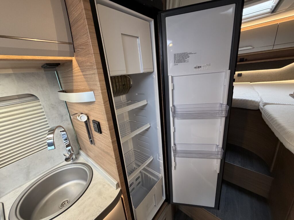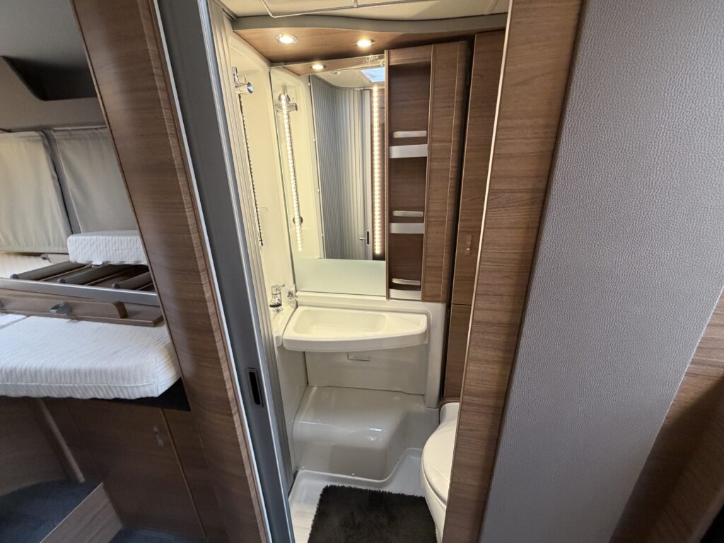 Koelkast met vriezer, toilet, vast bed en douche voorziening