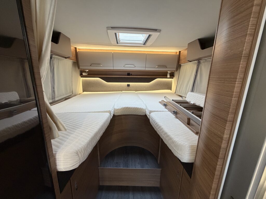 • Enkele bedden achterin: 200 x 80; 198 x 80  cm uit te breiden tot 1 groot bed met tussenstuk van ongeveer 50 cmDeze camper is toevallig een automaat. Als de camper verkocht wordt of uitvalt dan zetten wij een vergelijkbare camper in. Wij kunnen géén automaat garanderen.