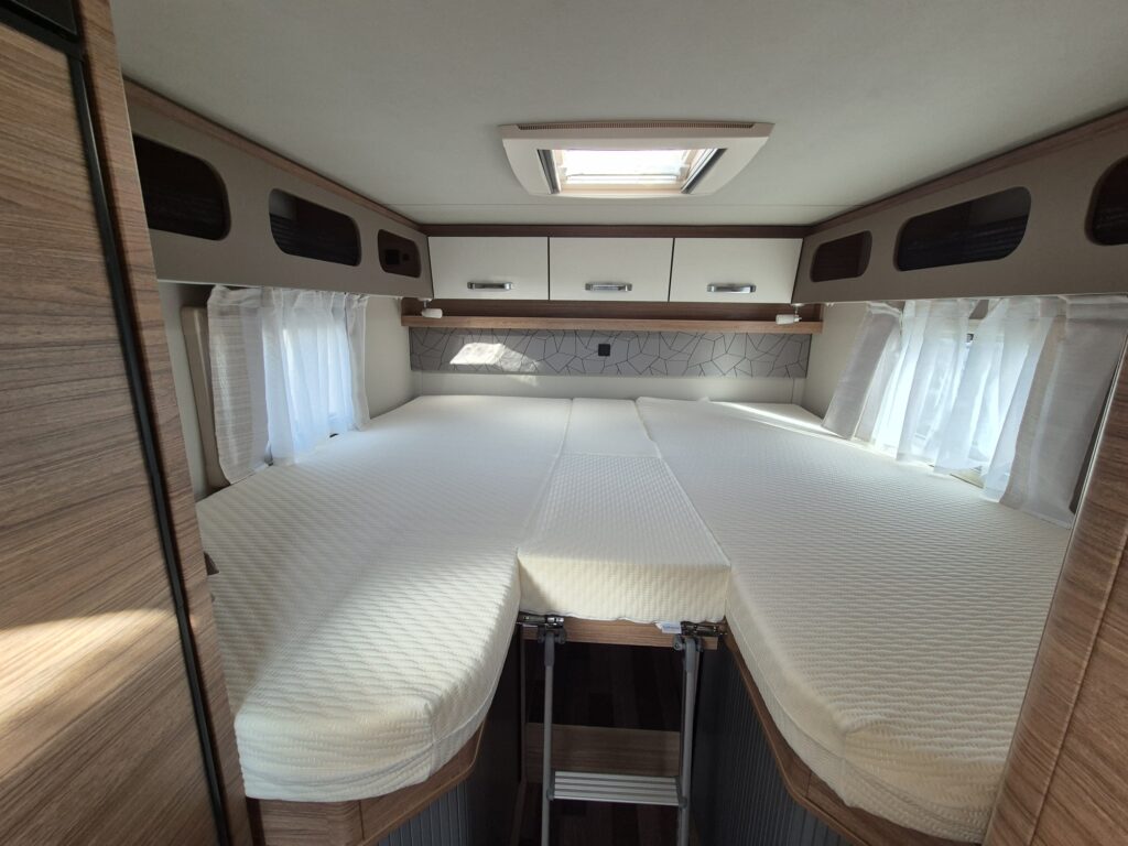 • Enkele bedden achterin: 200x82 + 200x82 cm uit te breiden tot 1 groot bed met tussenstuk van ongeveer 33 cm