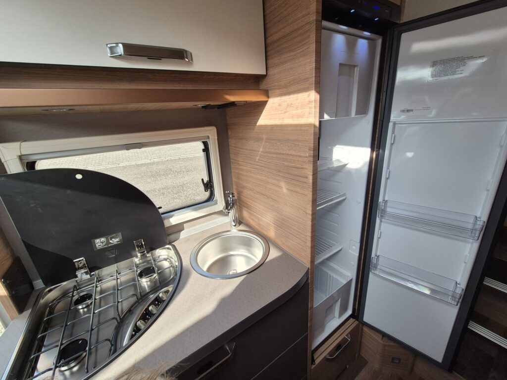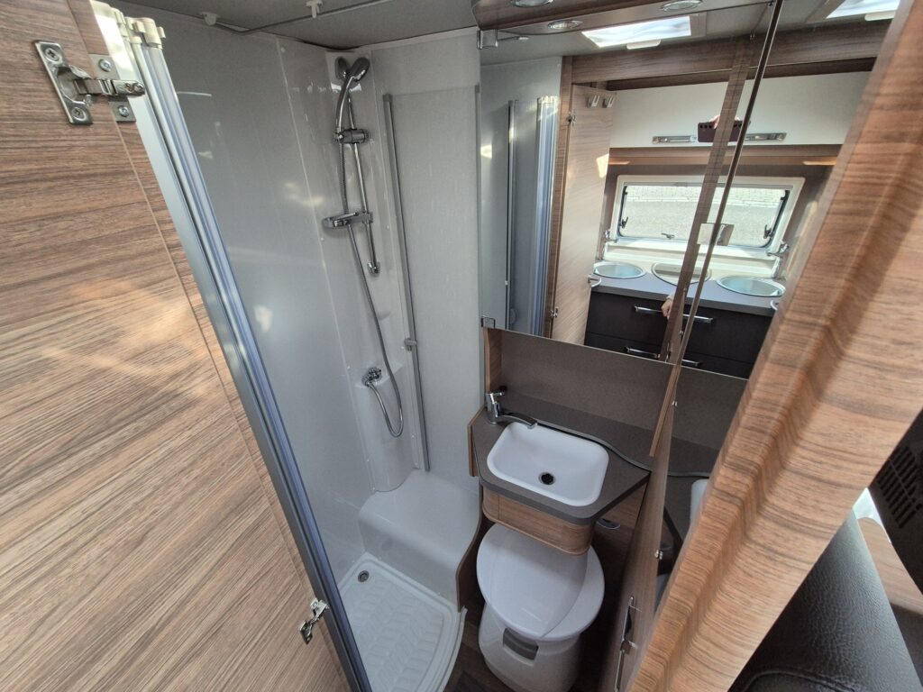 Koelkast met vriezer, toilet, vast bed en douche voorziening